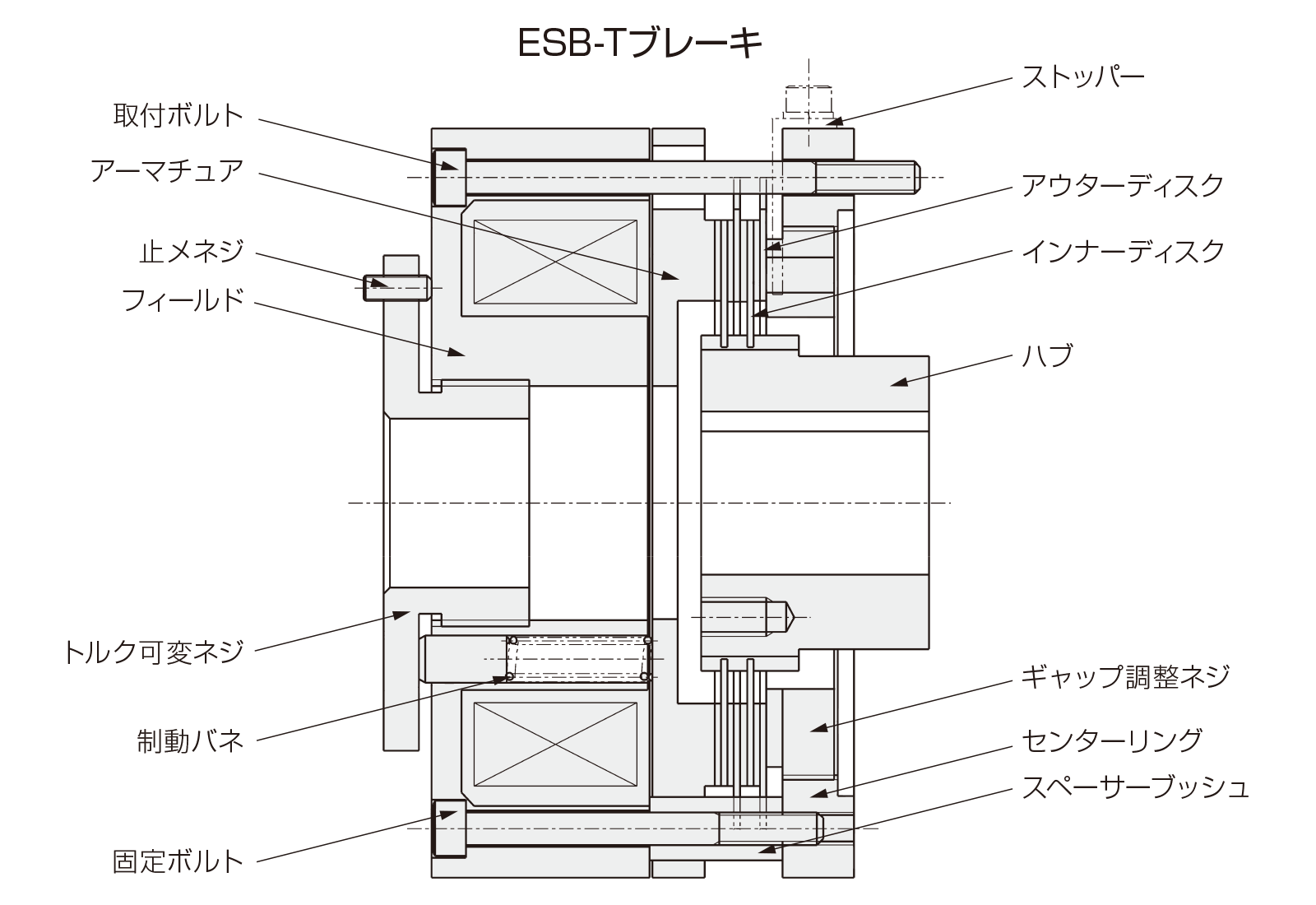 電磁石の力で可動鉄心が引き寄せられて、ブレーキの板がフリーの状態になるということだね
