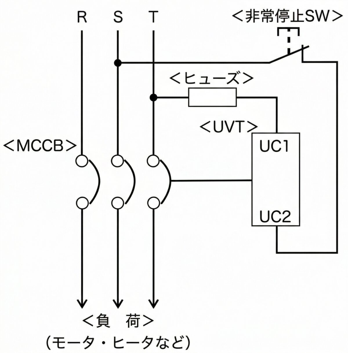 なお、ブレーカの二次側から電源をとる回路にすると、UVTが先に働いてブレーカを入れることができなくなるため注意しましょう。