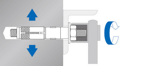 メカニカルアンカーの多くは、穴の中で金属部分が拡張して穴の側面に引っ掛かることでボルトが固定されます。