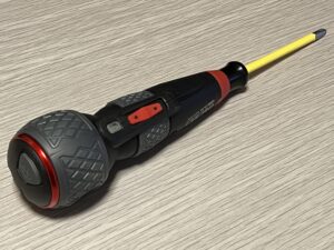 電動小型ドライバーは一見すると普通のドライバーに見えますが、中にバッテリーとモーターを内蔵しており、スイッチを入れるとドライバーの軸が回転してネジを締めたり緩めたりすることができる電動工具です。