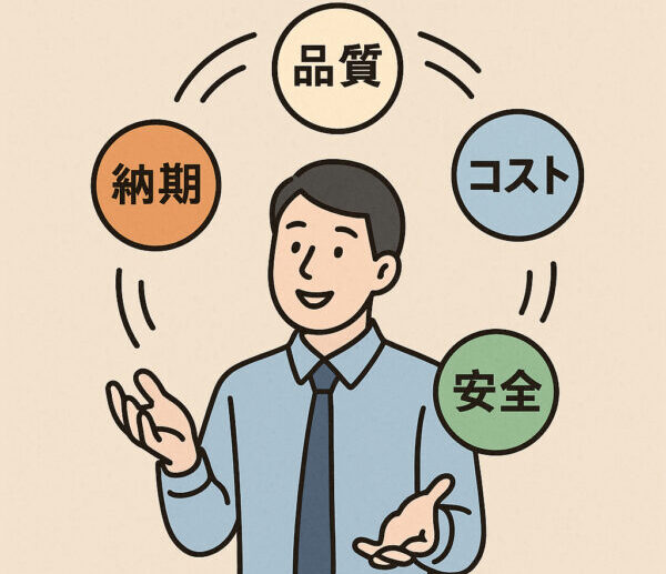 例えば、客先から求められる仕事の「品質」や、決められた日までに完工する「納期」、工事に掛かる「価格(コスト)」、そしてケガなく無事完工する「安全」などですね。