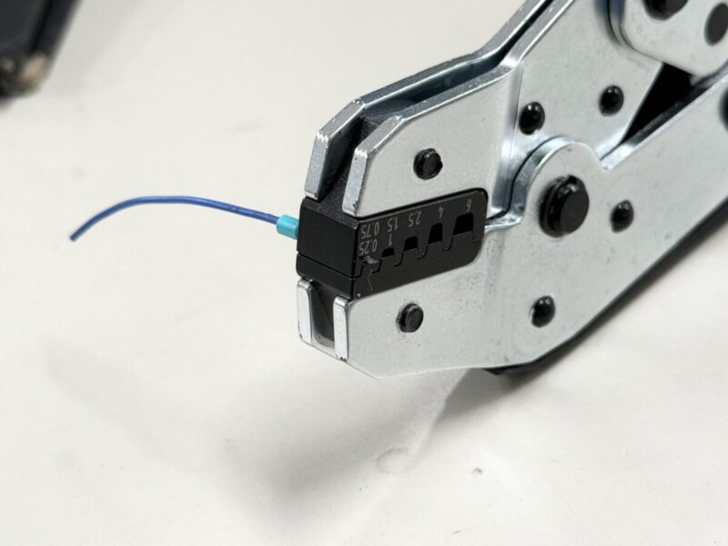 僕が使っている圧着工具はフェニックス・コンタクト社製の「CRIMPFOX 6」で、これ1本で0.25〜6㎟までのフェルール端子に対応できます。