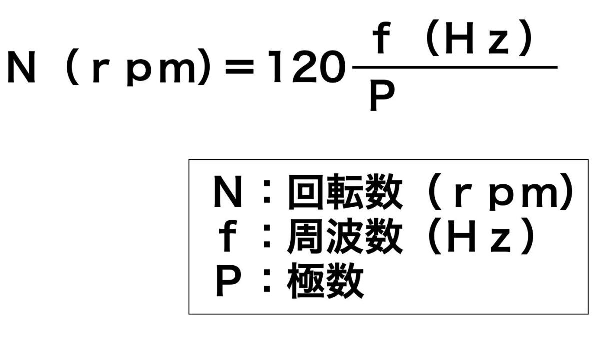 モーターの回転数は、周波数等の数字を使って次の式で表されます。