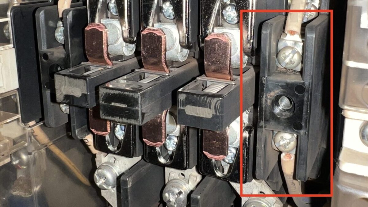 必ず電源を切ったうえで、点検する電磁接触器の端子を検電し、安全を確認してから作業を行うようにしてください。