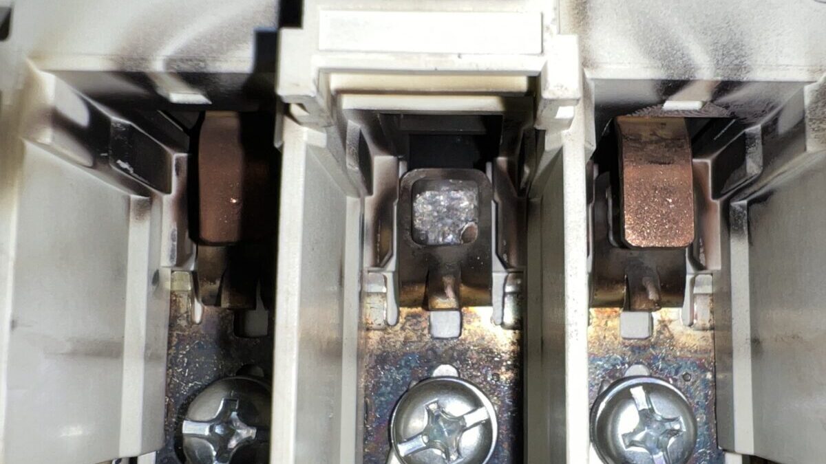 また、接点の周辺も黒く焼けて、一部溶けている箇所も見受けられますね。