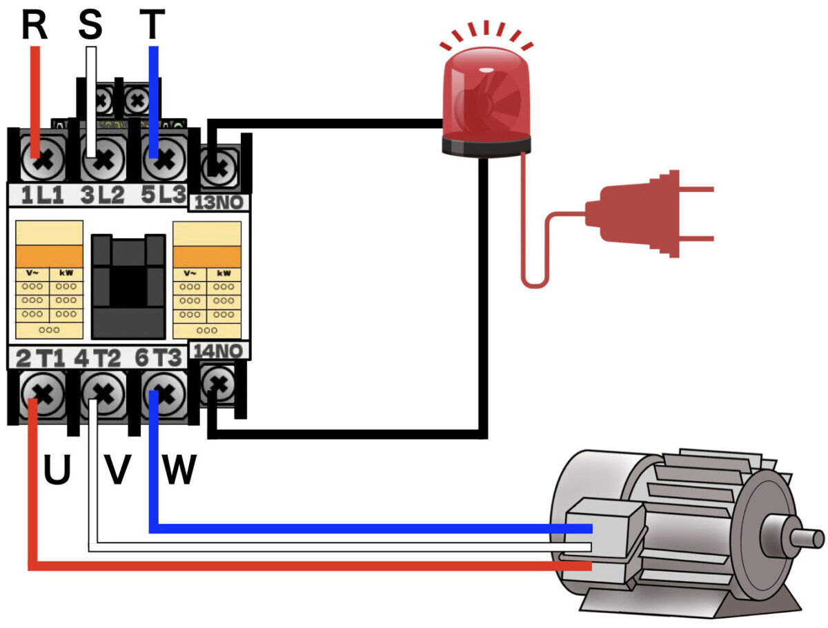 なお、電磁接触器が動作しているときに表示灯を点灯させたい場合は、補助接点を使用すると便利です。
