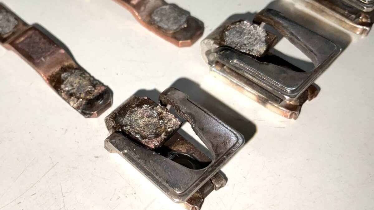 溶着はモーター焼損等による不具合によって大電流が流れて発生する場合が多いですが、接点の不良によって接触部が熱を持つことで発生する場合もあります。
