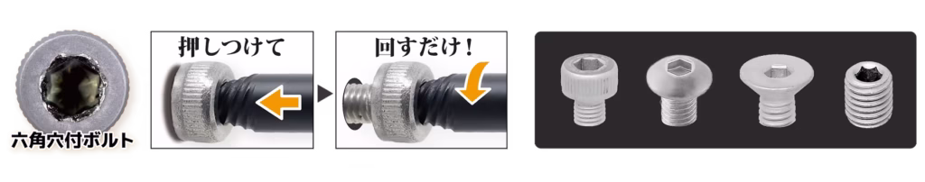 固いネジを緩める場合に使用すると、溝を痛めにくくなりますよ