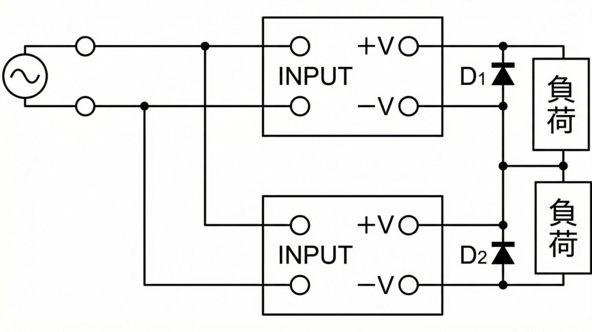 オーディオ機器や駆動装置へのアナログ信号など、使用用途によっては「プラス」と「マイナス」の両方の電源(例 ±DC12V等)が必要になることがあります。