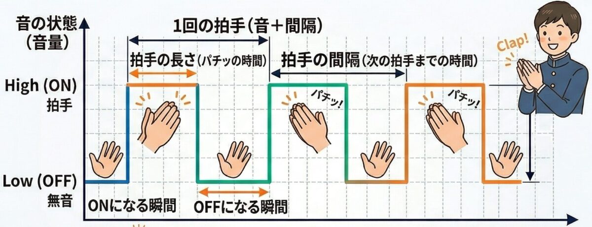 例えるなら、手を叩いて「パチッ!パチッ!パチッ!」とリズムをとるようなものですね。