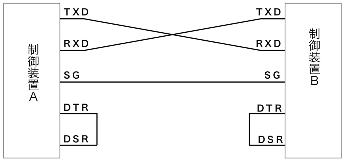 RS-232Cは最低3本の通信線があれば、制御機器同士をシリアル通信で接続することができます。