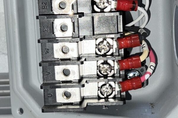 下の写真では、キャップの色をそれぞれ「R相:赤色」・「S相:白色」・「T相:青色」とすることで、視認性を高めています。