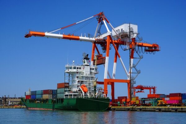 コンテナを船から下ろしたり積載したりするときに使われるのが、コンテナクレーン(ガントリークレーン)です。