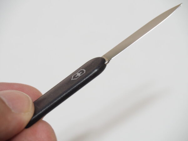 スモールブレードは手のひらサイズの小さなナイフで、こんなに薄いのにビクトリノックス製ということもあって切れ味は抜群です。