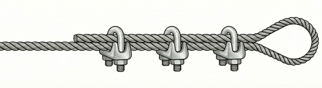 ただし、正しく取り付けられていないと、ワイヤーロープを痛めてしまったり、クリップから抜けてしまうといった事故に繋がる可能性があります。