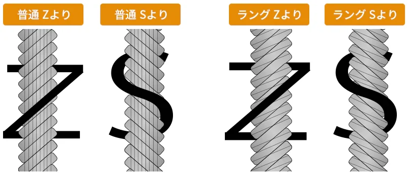 ワイヤーロープには、より方の方向によって4種類あります。