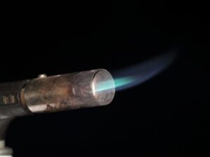 ベアリングヒーターに代表される誘導加熱装置や油焼きといった方法を用いて加熱できれば一番いいのですが、現場の組立作業で焼きばめを行う場合はガスバーナーを使うことが多いかと思います。