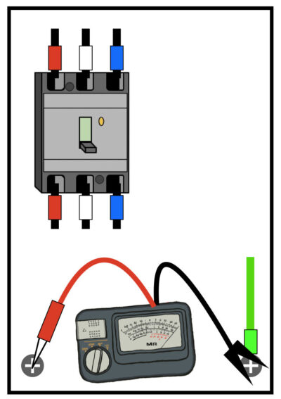 例えばモーターの絶縁抵抗値を測定するのであれば、測定したいモーターの配線がどれなのかを確認する必要がありますし、電源側の絶縁抵抗値を測定したいのであれば、ブレーカのどの部分を測定するのかを確認しておくことが非常に大切です。